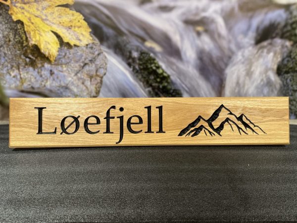 Gi hytta eller huset ditt et personlig preg med et solid og tidløst eikeskilt. Våre skilt lages i heltre eik fra Sangesland, høvlet på Katerås i Iveland og ferdig pusset og tilpasset i vårt verksted i Vennesla. Hvert skilt freses med høy presisjon, der bokstavene inngraveres og males for et tydelig og varig uttrykk som står godt til den naturlige eikestrukturen. For å sikre at skiltet tåler vær og vind, blir det behandlet med tre strøk Danish Oil. Resultatet er en vakker, matt overflate som fremhever treets årringer og gir lang levetid, selv når skiltet henger utendørs året rundt.