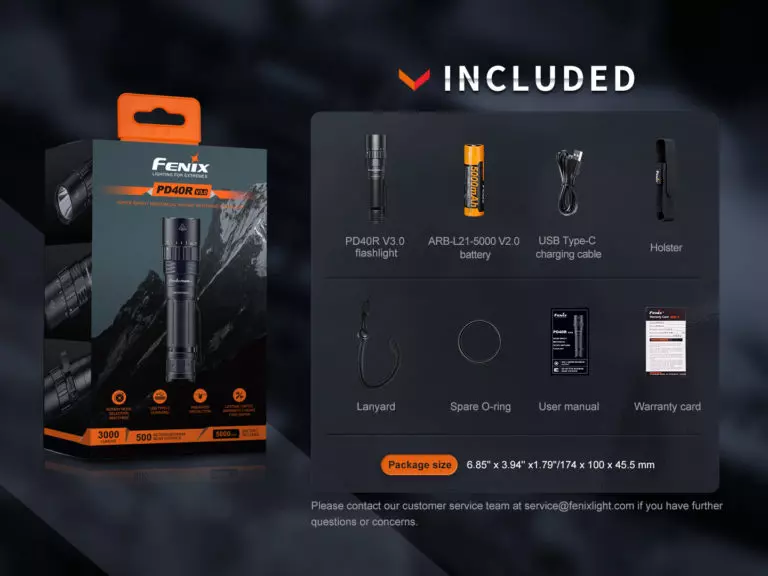 Fenix PD40R V3.0 er en høyytelses oppladbar lommelykt med mekanisk dreiebryter.