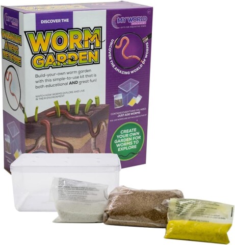 Studer den fasinerende meitemarkverden med dette morsomme og lærerike settet. Se på markene dine blande de forskjellige lagene i akvariet og mat dem med blader. Dette produktet er en flott mulighet for å lære barn og voksne mer om meitemarkeness betydning i vårt økosystem.